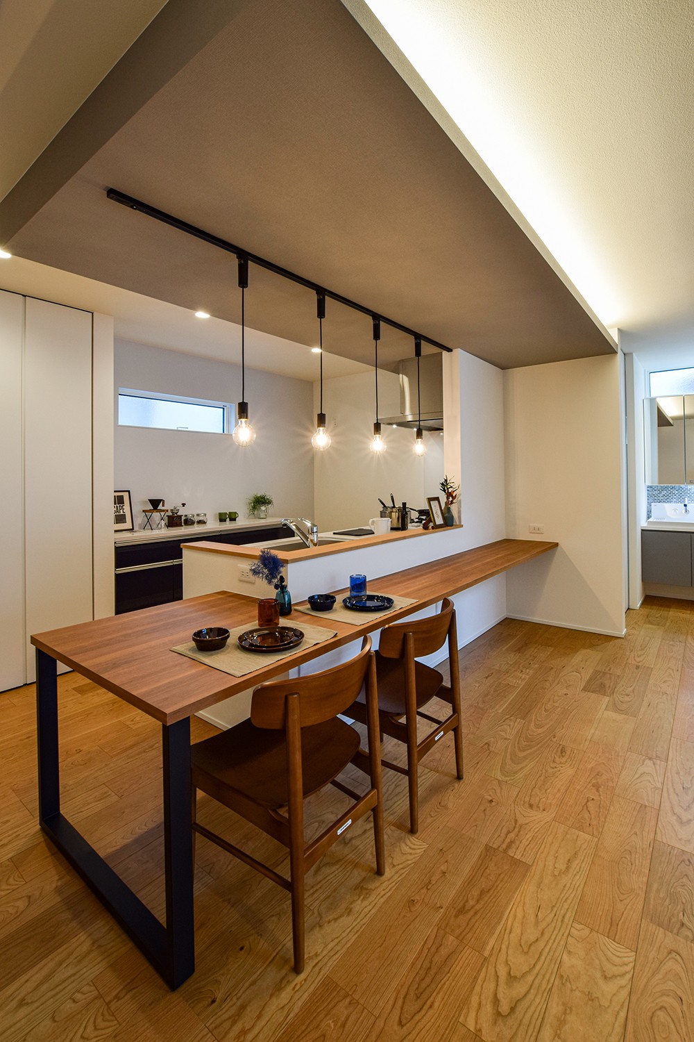 25坪を感じさせない広がりの洗礼された間取りデザインとオーナーこだわりの厳選テクスチャを、何度も打合せ調和した空間。きっと家から出たくなくなる。
